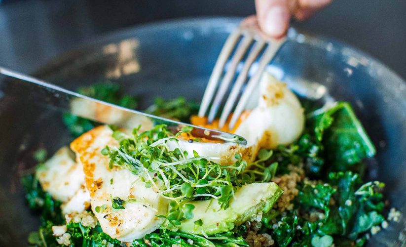 - Soak chopped onions in water: Place the chopped onions in a small bowl of water. This will help take the edge off the onions. Let sit while you prepare the rest of the salad.